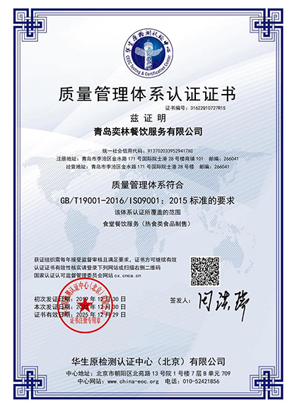 青島奕林餐飲服務(wù)有限公司成立于2014年,“奕林”出自成語(yǔ)“門(mén)庭赫奕,杞梓之林”代表著擁有眾多的專(zhuān)業(yè)人才,在行業(yè)內(nèi)有一定的聲望和地位。公司是一家基于從廚房設(shè)計(jì)、設(shè)備提供、原材料種植加工、現(xiàn)場(chǎng)及增值服務(wù)為一體的全產(chǎn)業(yè)鏈團(tuán)餐服務(wù)商。是青島地區(qū)食堂外包知名企業(yè)。公司先后通過(guò)IS09001質(zhì)量管理體系認(rèn)證、HACCP危害分析與關(guān)鍵控制點(diǎn)體系認(rèn)證、S014001環(huán)境管理體系認(rèn)證、ISO22000食品安全管理體系認(rèn)證和SO45001職業(yè)安全健康體系認(rèn)證。