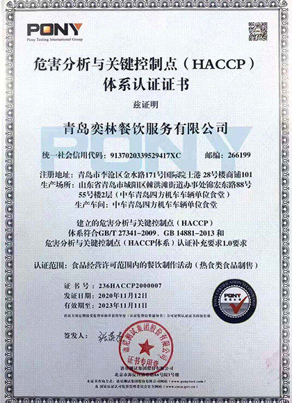 HACCP 危害分析與關(guān)鍵控制點(diǎn)體系認(rèn)證證書(shū)